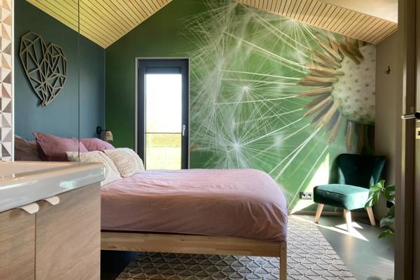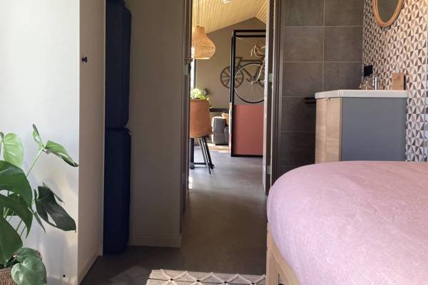 Bij aankomst geniet je van een comfortabel 2-persoonsbed (160×200), al opgemaakt voor je verblijf, en een badkamer en suite met regendouche en voldoende handdoeken. De keuken is volledig uitgerust met oven, inductiekookplaat, koelkast, vaatwasser, servies, bestek, pannen, keukengerei en een snelfilter koffiezetapparaat, terwijl de open keuken/woonruimte met schuifpui toegang biedt tot een sfeervolle zithoek, inspirerend leesvoer, digitenne TV, free wifi, elektrische verwarming en ventilator. Buiten kun je ontspannen in de royale privétuin met zon en schaduw, op een terras met loungebank, kussens en stoeltjes, bij de vuurplaats met houtkachel/BBQ, of in een hangmat om in weg te dromen.